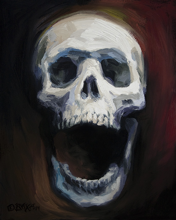 "Screaming White Skull" Oils on board 8" x 10" |