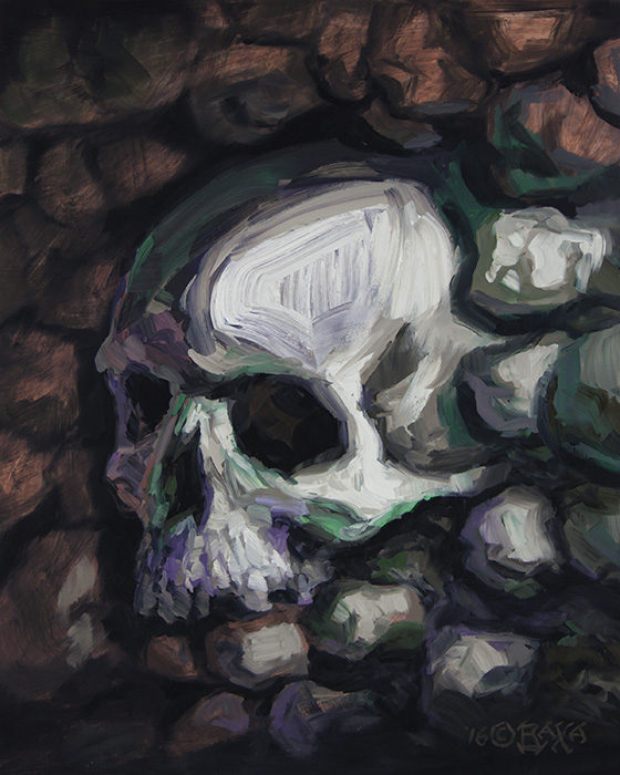 "Skull in Wall" Oils on board 8" x 10" |