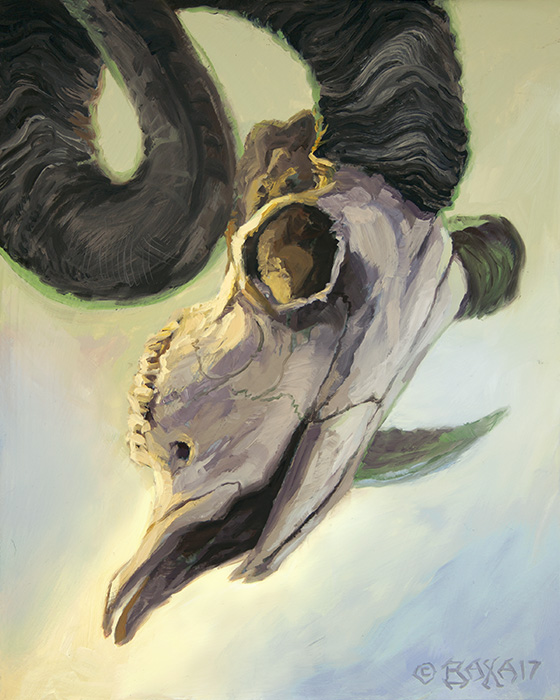 "Ram Skull Blue Sky" Oils on board 8" x 10" |